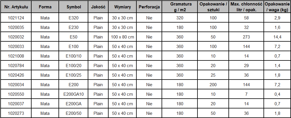 Jest to specjalny jednowarstwowy sorbent włókninowy, hydrofobowy. Do większości zastosowań w codziennej pracy. Włóknina bez dodatkowego wzmocnienia na górnej lub dolnej stronie. Nadają się do ekonomicznego stosowania przy usuwaniu niewielkich wycieków lub do codziennego użytku podczas prac porządkowych, konserwacyjnych i naprawczych.
