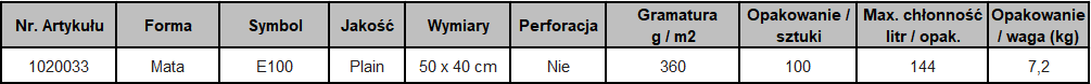 Mata olejowa jednowarstwowa PLAIN (360 g/m2) 50 x 40 cm (100szt)