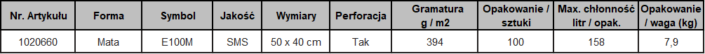 Mata olejowa trójwarstwowa wzmacniana SMS (394 g/m2) 50 x 40 cm (100szt)