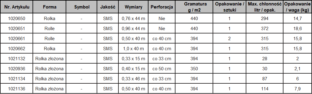 - Wysoka wydajność – maksymalna absorbcja olejów i cieczy ropopochodnych
