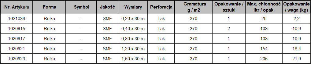 - Wysoka wydajność – maksymalna absorbcja olejów i cieczy ropopochodnych