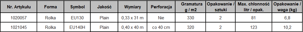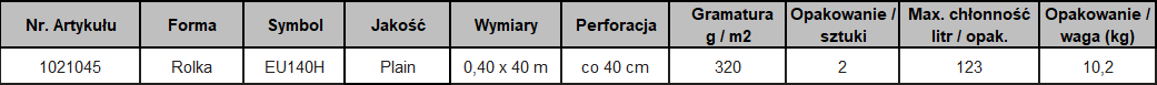 Rolka chemiczna jednowarstwowa PLAIN 0,40 x 40m (2szt)