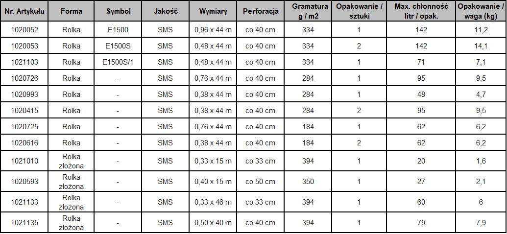 Sorbent włókninowy (hydrofilowy) do zastosowań uniwersalnych. Chłonie niemal wszystkie rodzaje cieczy przemysłowych, w tym oleje, emulsje, chłodziwa, środki smarne, płyny niezamarzające, wodne roztwory oraz nieagresywne kwasy i zasady. Kolor szary dobrze maskuje zabrudzenia