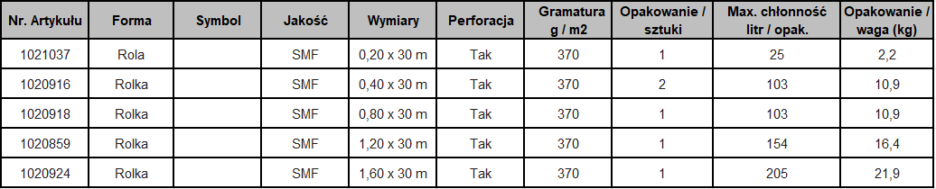Sorbent włókninowy (hydrofilowy) do zastosowań uniwersalnych. Chłonie niemal wszystkie rodzaje cieczy przemysłowych, w tym oleje, emulsje, chłodziwa, środki smarne, płyny niezamarzające, wodne roztwory oraz nieagresywne kwasy i zasady. Kolor szary dobrze maskuje zabrudzenia
