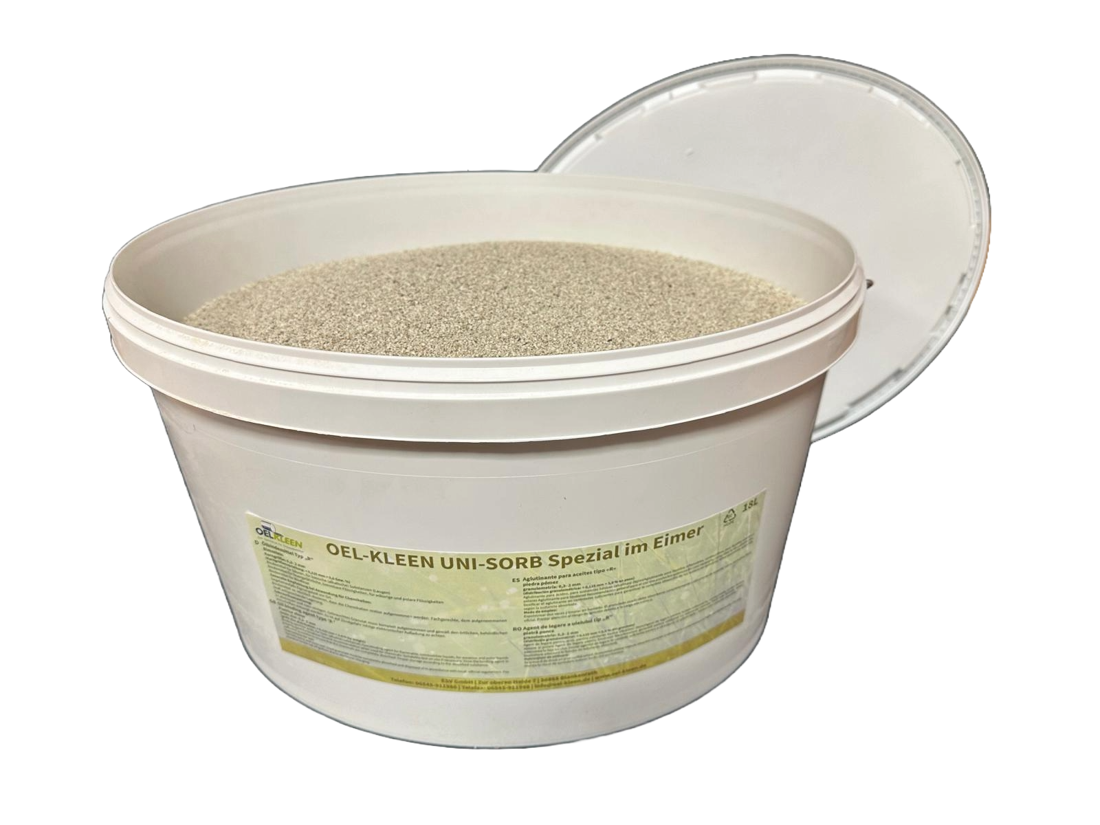 - Doczyszczanie: Powierzchnie silnie zaolejone należy najpierw zmiękczyć odpowiednim środkiem czyszczącym, a następnie posypać UNI-SORB-em.